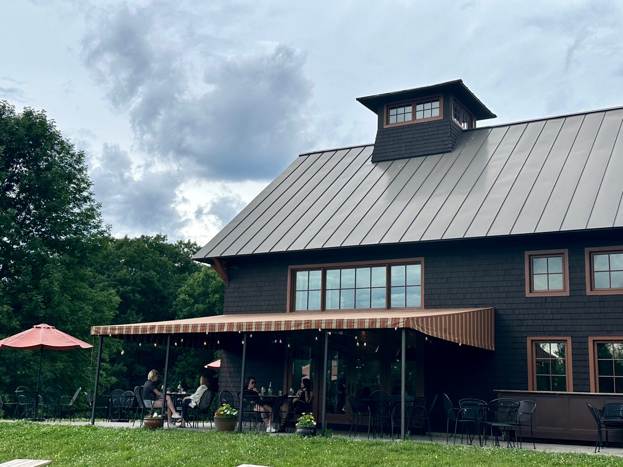 Next, we head to Lincoln Peak Vineyard, a vine nursery specializing in hybrid grapes. The vineyard’s unique care for their vines, buildings, and overall geography and climate makes it a special place. The owners are committed to preserving the vineyard’s heritage and crafting exceptional wines. We love their delicious wines and the beautiful view from the porch overlooking a small pond. Enjoy your wine tasting with a local cheese and charcuterie plate for a complete experience.